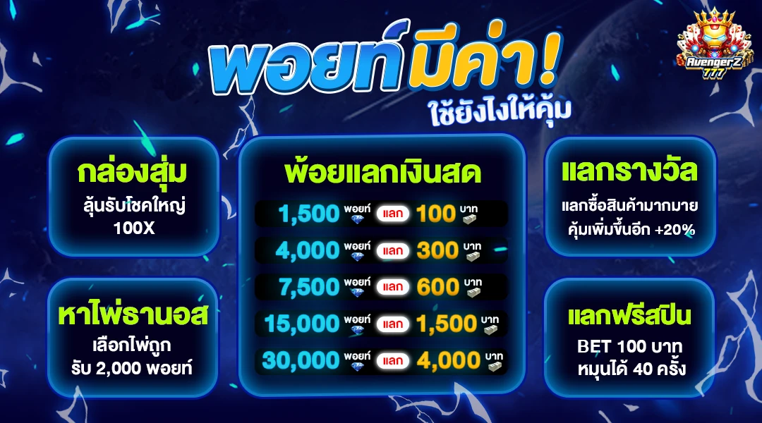 สำหรับผู้ที่ชอบความท้าทาย Avenger777 ยังมีโปรโมชั่นและโบนัสที่น่าสนใจมากมาย ไม่ว่าจะเป็นโบนัสต้อนรับสำหรับสมาชิกใหม่ โปรโมชั่นฝากเงิน หรือกิจกรรมพิเศษที่จัดขึ้นเป็นประจำ โบนัสเหล่านี้ไม่เพียงเพิ่มโอกาสในการชนะ แต่ยังทำให้การเล่นของคุณสนุกและคุ้มค่ามากขึ้น แถมยังมีระบบสะสมคะแนนที่สามารถแลกเป็นของรางวัลหรือสิทธิพิเศษต่าง ๆ ได้อีกด้วย